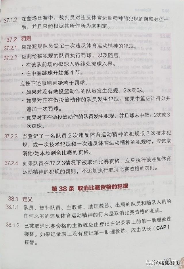 但各位注意,37.2.3和37.2.4針對(duì)的是隊(duì)員,而不是教練,所以我理解,教練如果被罰出去,應(yīng)該是兩次罰球,這也是為什么2+3=6的原因。當(dāng)然,我說(shuō)了也不算,咱們等籃協(xié)解釋——有球迷也發(fā)我新版,說(shuō)里面加上了“教練和隊(duì)員”。