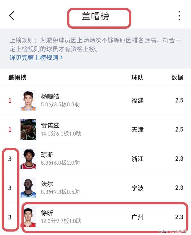 值得關注的是,徐昕場均9.7籃板,位列全聯盟第3,排在周琦(第5)前面;場均2.3次蓋帽,同樣排名全聯盟第3,與浙江隊的大外援瓊斯,寧波隊的大外援法爾,這2名“黑高壯”的外援并駕齊驅。