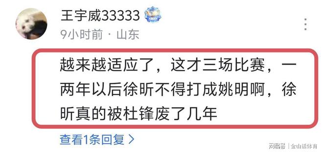 徐昕在“新東家”如魚得水的出色表現,也令眾人球迷(包括廣東球迷)喜出望外,贊揚聲一片“也不怪人家徐昕不服氣,確實有這個能力”;“離開杜鋒也是好起來了”;“徐昕:我在廣東四年了,還沒廣州三場快活”;“他早該出頭了,被杜峰壓住了上限,還有一堆人給杜鋒洗說什么以前身體還沒長好,當別人都是傻子呢”;“這么好的胚子在國產教練手上用了幾年 差點就廢了 為什么人米切爾能用好?”。