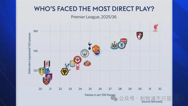 原因在于,作為衛(wèi)冕冠軍,本賽季的利物浦被針對了,或者說被針對的最嚴重。對手們知道利物浦喜歡和善于高位逼搶,紛紛采取簡單粗暴的開大腳、起高球的防守,避開利物浦重兵部署的高位逼搶,將球長傳到利物浦后場開闊地,直接沖擊利物浦后防線。此前已經有很多數(shù)據(jù)表明,本賽季英超,利物浦是對手打長傳球最多的球隊。