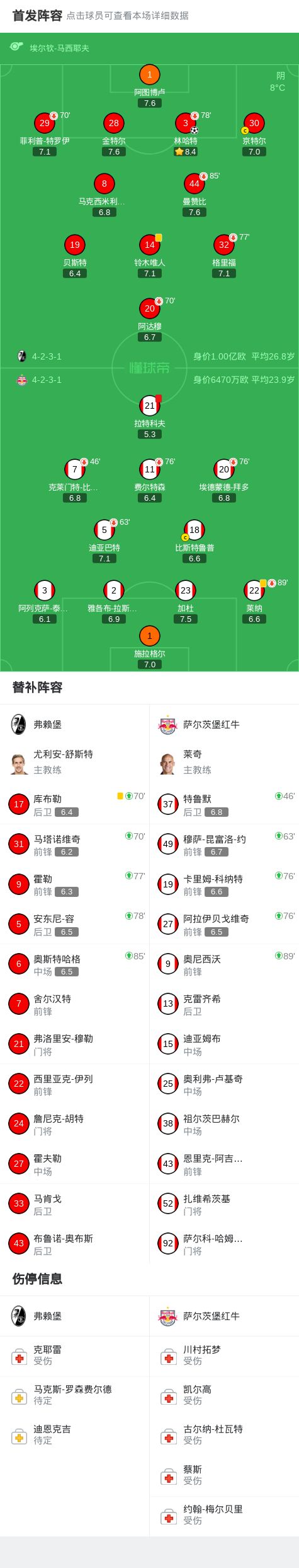 歐足聯(lián)歐洲聯(lián)賽聯(lián)賽階段第6輪,弗賴堡迎戰(zhàn)薩爾茨堡紅牛。比賽中,薩爾茨堡紅牛球員拉特科夫被罰離場(chǎng)。隨后,弗賴堡由林哈特攻入制勝進(jìn)球。最終,弗賴堡以1-0戰(zhàn)勝對(duì)手。
