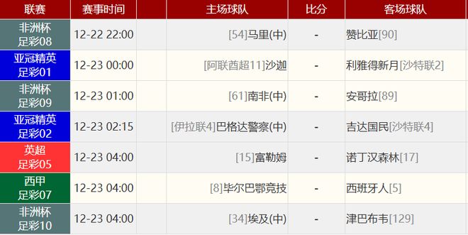 其他賽事比分: